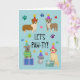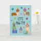 Det här är ett sött födelsedagskort med fem hundar på party hattar. Det har ett par presenter och tass avtryck med texten "Låt oss vara Tass!"