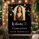 Welcome your guests in style with this elegant black and gold arch photo poster sign, featuring sparkling gold stars and your personalized photo. Perfect for women’s birthday parties of any age — from 18th to 80th — this modern welcome sign adds a luxurious touch to your event.