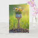 En målningspensel är inbäddad i jord och innehåller kreativt en bukett av daisy, solblommor och andra vilda blommor för en födelsedag. Inre text kan ändras.
