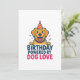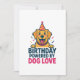 A cheerful birthday illustration featuring a happy golden retriever wearing a festive party hat with an excited, joyful expression. The playful cartoon style, bright colors, and bold lettering create a lively celebration vibe that dog lovers instantly connect with. This fun design captures the idea that birthdays are better when powered by dog love, happiness, and positive energy.