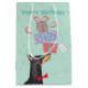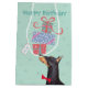 Grattis på födelsedagen hälsning med den här söta designen som har en leende Doberman Pinscher balanserar en hög med presenter på näsan. Det går lätt att ändra texten. Klicka bara på knappen Anpassa.