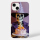Ett lustigt skelett som firar med en födelsedagskalas fullt av läskljus. Perfekten är snabb Halloween-utformning för party älskare och humor fläkt.