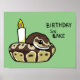 Varför har du en födelsedagskalas när du kan föda SNAKE? Fira en reptil-älskare födelsedag med denna charmerande boll python poster. Ett bra handritat boll-python med söt leende ansikte och brunt och silver grått-märkning, som glatt kokas runt ett födelsedagsljus bredvid texten "Birthday Snake" skriven i ställe på "Birthday Cake".