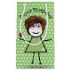 Birthday stick tjej med vin glas, hår, pärlhalsband, senor och glasögon på en grönt och vit polka-punktbakgrund för födelsedag. Text kan redigeras eller tas bort.