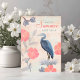 Celebrate the warmth of summer with nature-inspired birthday card featuring pink flowers and a blue hand drawn heron in a collage style.