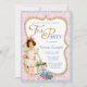 Vintage-födelsedagstbjudan med en söt Victorian-flicka på en söt rosa-damm och blå bakgrund. Den här söt rosa-, blå- och guld-tebjudan är lätt att anpassa för evenemanget genom att helt enkelt lägga till dina uppgifter i det teckensnitt du väljer i stil och färg. Det här är en tryckt design utan äkta glitter.