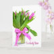 Ljusa rosa-tulpaner i vas med polka-punktbåge för Niece.