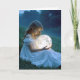 En ung flicka i en vit klänning sitter på en grasslig fält och håller försiktigt en glansande orb som liknar måne. Inre text kan ändras.
