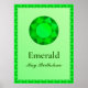 Poster i en digital illustration av en emerald, födelsesten för maj, i ljusskuggor till djup emerald grönt, intill en emerald Kristal mönster