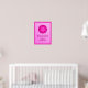 Poster i en digital illustration av en rosa tourmaline, födelsesten för oktober, skuggor av djup fuchsia till blekens rosa, intill en turmalinkristaller mönster