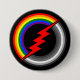 Kretskårans cirkel delad i en halv del av en bultsymbol som bildar två regnbågar. HBT-regnbåge flagga färg på ena sidan, gråskala på den andra. Symboliserar hälften och hälften. Bisexualitet.