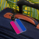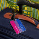 Den djupa rosan eller ro rand överst på flagga utgör möjligheten till samma gender attraktion. royalet blått rand grund i flagga utgör en möjlighet för olika gender attraktion och ränderna överlappar varandra i den centrala femtedelen av flagga för att bilda en djup skugga av lavender eller lila, vilket innebär att attraktion kan finnas var som helst längs hela gendernas spektrum.