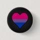 Classic Round Button with heart design in colors of bisexuality; pink, purple and blue stripes pride flag, rainbow love design