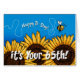 " Lycklig B-dag - det är din 65e!", Ett specifikt födelsedagkort för gullig ålder som presenterar ett bi som flyger över en ro av solrosor.
