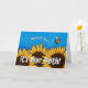 " Lycklig B-dag - den är din 98th!", Ett specifikt födelsedagkort för gullig ålder som presenterar ett bi som flyger över en ro av solrosor.