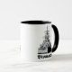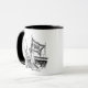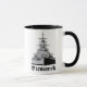 Mug with drawing of two German sailors of the famous German battleship Bismarck of world war II with the name of the ship written with fraktur letters.