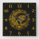 Bison Buffalo i Intricate Blommigt Design Mönster Fyrkantig Klocka