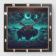 Bison Buffalo Moonlit Neon Bison Fyrkantig Klocka