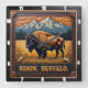 Denna illustration är en hyllning till den amerikanska Västern, med en stiliserad bison i ett grassligt fält. Bakgrunden har ett bergsområde under en vibrerande solnedgång. Konsten har ett utmärkande, verktygslöst läder struktur och ett dekorativt gräns. Ord "BISON, BUFFALO" finns vid grund.