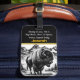 En magnifik bison står stolt i ett lugnt landskap, omgiven av höga tallar och avlägsna bergstoppar. Himlen är målad med mjuka skymningsfärger, vilket skapar en lugn bakgrund för denna ikoniska symbol för den amerikanska vildmarken.