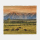 Detta foto presenterar en flock av bisonen som fritt strövar omkring som sollöneförhöjningarna framme av den storslagna Tetonsen.