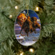 Bison Pulling Jultomten Julgransprydnad Keramik