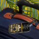Bisonuppfödare vid solnedgång i fält bagagebricka