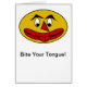 En söt och rolig gult ansikte med stort rött läppar och tunga. Näsan är en röd triangel. Ansikte har också stora svarta och vita ögon och nära öga-bulkar. Ett mycket fånig tittar tecknade figurer. Standardtexten för den här designen är "Bita Ditt Tunga!", men orden kan anpassas till önskad spelar ingen roll.