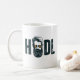 Det här Bitcoin kaffet mugg har en skäggig man med Bitcoin ögon och den typografiska ord hodl.