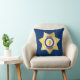 Roligtens kudde med en stor sheriff guld stjärna på framsidan, på en djup blå bakgrund. Baksidan av kudden är mönster i samma guld-stjärna.