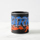 Eine sehr schöne stylische personalisierte Tasse / Kaffeetasse / Teetasse im Graffiti Urban Streetart blue orange Design für Bjarne.