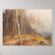 Hugo Mühligs Björkskog är en hänförande framställning av en lugn skog badad i mjukt, naturligt ljus. De slanka vita stammarna på björkarna står höga, deras gyllene och gröna blad prasslar i en svag bris. Solljuset filtreras genom lövverket och kastar fläckiga skuggor på skogsbotten, där en fridfull stig slingrar sig genom träden. Målningen fångar naturens tysta skönhet på ett sätt som inbjuder betraktaren att stiga in i det lugna landskapet.