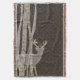 Themed kastfilt för älskvärd natur som göras i en brunt på brunt blom- damastast mönster. Halva genomskinliga diagram av högväxt björkträd och en hjort som kikar ut bak dem, dekorerar vänster sida av filten. Personifiera eller ta bort den skrapade tittar initialer, på träd. Gör en älskvärd gåvaidé.