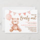Björn Baby Shower inbjudan för babyflicka, Vi kan knappt vänta, björn med ballong