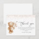 Björn och bina tackkort med roséguldkonfetti, över en akvarell boho björn, som håller en knippe krämfärgad pampasgräs med ömtåliga persikofärgade blommor och ser upp mot en humla. Texten kan enkelt redigeras, teckensnitt och bakgrundsfärg kan också ändras genom att klicka på länken Anpassa ytterligare efter anpassning.