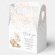 Planera en första födelsedag är en kärlekens gärning, och våra charmiga björn-tema tack-boxar är den perfekta avslutningen. Med en rörande illustration av en björn som håller i pampasgräs bland persikor blommor och en anpassningsbar tack-meddelande, innesluter dessa lådor tacksamhet på det mest förtjusande sätt. Anpassa typsnitt, storlek och färg till era önskemål för en extra personlig touch.