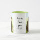 Den nyckfulla bläck- och vattenfärgillustrationen av 2 djura vänner, ett Big Bear och lite en kanin, med fodra, "vänner har din baksida!", dekorera en mugg av ditt primat. Du kan även ändra eller ta bort ord, om du föredrar.
