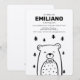 Minimalistisk design med en björn i flugbindel i skogen. Anpassa dessa inbjudningar för alla evenemang. Tryckt på slät brun kraftpapper.