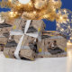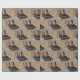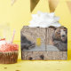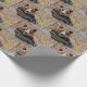 Sömmande brunbjörn med öl mugg på rustiskt trä bord