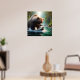 En målning som visar en björn och en fisk som är lätt sammanflätad i floden. björnen når ut till fisken när den elegant simmor mot strömmen och skapar en harmonisk och fängslande scen.