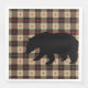 Perfekt för vinterstugan i skogen. Bakgrund av fläsk, svart och röd med silhuetten av en björn