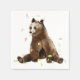 Söt digital björnskiss med färgstarka löv som flyger förbi