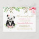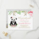 Söt snygg bedårande rosenskära blomster, rosa rosblomma grönska eukalyptus, akvarellblad botanisk, salvia gröna blad, guldblad, babypandabjörn, vi kan knappt vänta! Det är en flicka! inbjudan till babyshower. Du kan anpassa denna moderna eleganta inbjudan med din egen text och foto. Vänligen ersätt provfotot med ditt eget. Fotoexempel med tillstånd av https://pixabay.com/es/users/regina_zulauf-2147792/