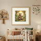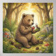 Träd in i en fridfull skogsdrom där milda djur vandrar genom varma skogar, bäckar och gyllene löv. Denna fantasifulla saga-illustration av en söt björn som delar en jordgubbe med en liten vän ger en mysig saga-atmosfär till förskolor, barnrum och lugna läshörnor.