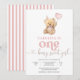 Fira din lilla en milstolpe med denna söta teddybjörn-födelsedagsinbjudan för ettårsfirande. Med mjuka pastellrosa och beige toner, en söt björn i födelsedagsmössa och en hjärtformad ballong är denna design perfekt för en söt och försiktig fest. Personifiera med ditt barns detaljer för att skapa ett charmerande minne som gästerna kommer att älska. Perfekt för babyflickors födelsedagar, denna inbjudan blandar lekfull design med tidlös elegans för att göra dagen extra speciell.