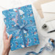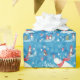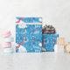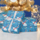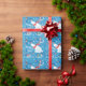 Detta slående in papper har ett upprepande mönster av polara björnar, och pingvin med scarves och vinterhattar på en blåtthavbakgrund och texten "övervintrar glädje".