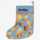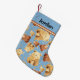 Cute baby har mönster på blå bakgrund på julstrummet. Festive and roligt anpassningsbar personlig stocking för pojkar eller flickor. Lägg till ett namn för att anpassa. Med användan "Redigera den här designen" kan du ändra färg eller stil i det teckensnitt som visas.