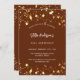 En brun bakgrund som dekoreras med gyllene stjärnor. Anpassa och lägg till information om namn och party. Namn är skrivet med ett handskript stil, det vita färgaden brev.