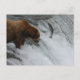 Det här är ett brunbjörn, vid Brooks Falls i Katmai nationalpark Alaska. Björnarna i Katmai nationalpark hänger ut vid ett litet vattenfall, där laxen simmar uppströms och försöker leka. De måste hoppa över vattenfallet, och när de hoppar kommer björnarna faktiskt att fånga dem med munnen. Här har han nästan fångat en fisk. Jag tog den här bild när jag besökte parken.