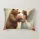Historien om en björn i kärlek som föreslår en vacker ängel med en blombukett. björnen här är jag.
